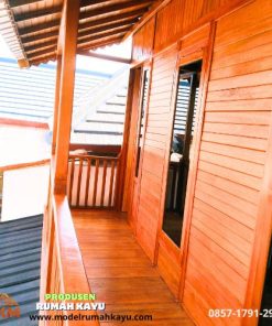 Model Rumah Kayu Tingkat dibuat dengan menggunakan bahan kayu Seru, Kayu Bambang dan Kayu Meranti. Bahan kayu tersebut berkombinasi dan dirakit menjadi komponen-komponen penting, yakni :